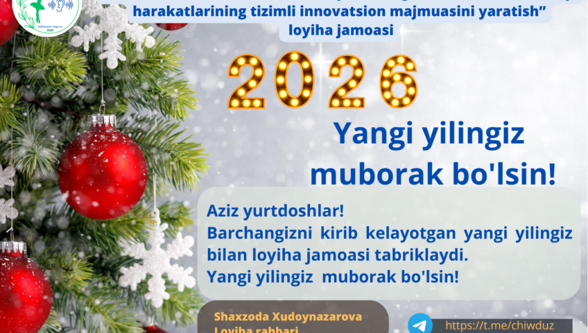 “Eshitishida va so‘zlashuvida nuqsoni bo‘lgan shaxslar uchun raqs harakatlarining tizimli innovatsion majmuasini yaratish” loyiha jamoasi barchangizni kirib kelayotgan yangi yilingiz …